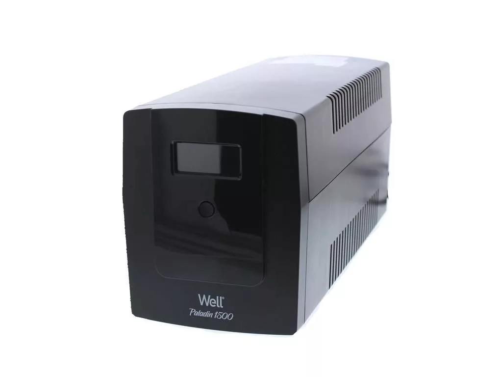 A Well 1500 szünetmentes tápegység (UPS) kiváló választás mind otthoni, mind kis irodai használatra. Az eszköz biztosítja a folyamatos energiaellátást áramkimaradás, áramszünet vagy ingadozás esetén, védelmet nyújtva ezzel számítógépes rendszereknek, szervereknek és egyéb kritikus eszközöknek. A kompakt kialakítás és a felhasználóbarát funkciók ideálissá teszik minden modern munkakörnyezethez. A Well 1500 szünetmentes tápegység 1500VA/900W teljesítményt nyújt, amely elegendő a legtöbb asztali számítógép és perifériák energiaellátásához rövid áramszünetek idején. Az automatikus feszültségszabályozás (AVR) stabilizálja a többlet vagy alulfeszültséget anélkül, hogy a belső akkumulátort használná, így hosszabb élettartamot biztosítva az akkumulátornak. Specifikációk Modell: UPS-LINT-PALADIN1500-WL Kijelző: LCD Kimeneti teljesítmény: 1500 VA / 900 W Kimeneti frekvencia: 50 Hz vagy 60 Hz (Automatikus érzékelés) Bemeneti feszültségtartomán: 162-290V AC Kimeneti feszültség: 220V AC Zajszint: ≤45dB (1m) Válaszidő: 8ms (max. 10 ms) Töltési idő: 6-8 h Túlfeszültség védelem: RJ45 Biztonság: termikus, túlfeszültség, rövidzárlat elleni védelem Bemeneti csatlakozó: 1 x bemeneti védőkapcsoló Kimeneti csatlakozók: 3x Schuko, 1 x USB, 2x RJ45 Töltési idő: Teljesen lemerült állapottól 6-8 óra Akkumulátor típusa: 12V 8Ah x 2 A kimeneti feszültség alakja: szinusz hullám Méretek: 345 x 140 x 170 mm