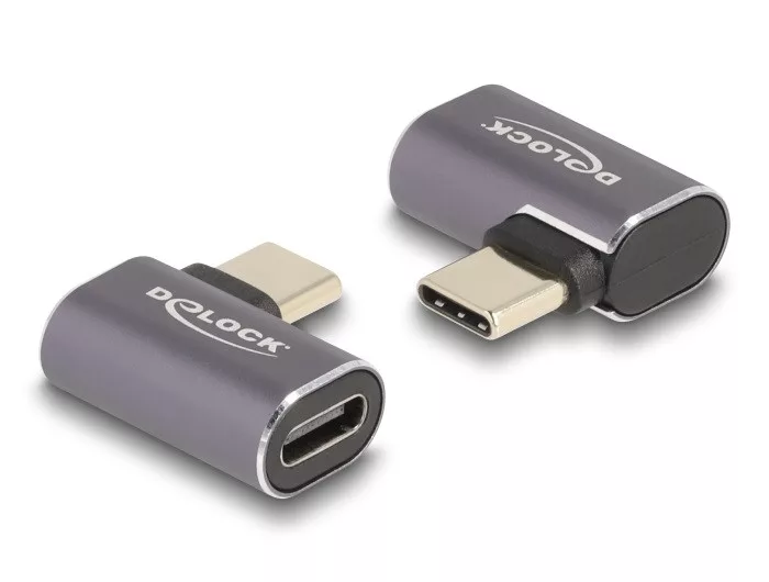 Delock USB Adapter 40 Gbps USB Type-C PD 3.0 100 W csatlakozódugóval - csatlakozóhüvellyel, ívelt bal / jobb 8K 60 Hz fém (DL-60047)