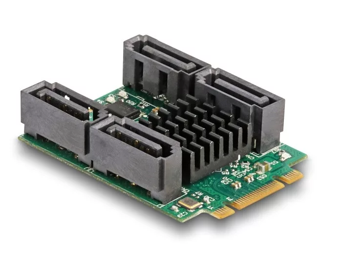Leírás Ez a Delock átalakító négy SATA-porttal bővíti ki a rendszerét. Ha egynél több SATA-portot használ, igény szerint más RAID-módokat is alkalmazhat. Az átalakító támogatja a Hyperduo funkció használatát. Ezzel a funkcióval egy SSD-t és egy HDD-t kombinálhat, amivel mindkét adathordozó előnyeit kihasználhatja az SSD sebességét és a HDD kapacitását. Műszaki adatok Csatlakozó: 1 x M.2 B+M-kulcs dugó 4 x 7 érintkezős SATA 6 Gb/s dugó Lapkakészlet: Marvell Csatolófelület: PCIe 2.0 Formatényező: M.2 3042 M vagy B+M nyílással ellátott, PCIe alapú M.2 aljzathoz megfelelő Akár 6 Gb/s sebességű adatátvitel A RAID 0, 1, 10, JBOD, HyperDuo Virtual Disk (mentés/kapacitás) támogatása Merevlemezek és SSD támogatása Támogatja a Native Command Queuing (NCQ) technológiát Rendszerindításra alkalmas Méretek (HxSzxM): kb. 42 x 30 x 13 mm Rendszerkövetelmények Linux Kernel 5.15 vagy újabb Windows 10/10-64/11 Windows Server 2019 Egy szabad M.2 aljzat M vagy B nyílással A csomag tartalma Átalakító Használati utasítás Csomag Doboz