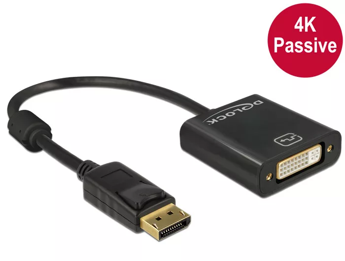 Ez az adapter lehetővé teszi, hogy például egy DVI-monitort csatlakoztasson egy szabad Displayport-csatolón keresztül. Ez az adapter legfeljebb Ultra HD (4K) felbontást támogat és visszamenőlegesen kompatibilis a Full-HD 1080p szabvánnyal.