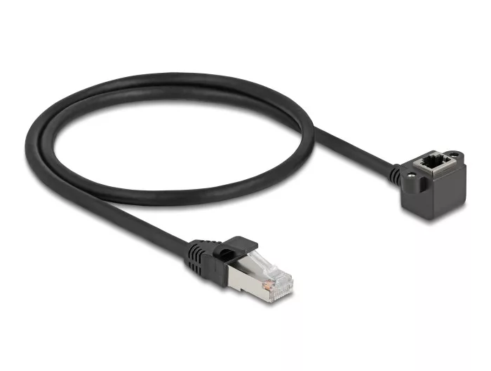 Leírás Ez a Delock hálózati kábel használható különböző eszközök meghosszabbítására és összekapcsolására. Hajlított anya csatlakozóval A hajlított anya csatlakozó lehetővé tesz egy helytakarékos installációt szűk helyeken eszközök mögött vagy hálózati szekrényekben. Műszaki adatok Csatlakozó: 1 x RJ45 dugó 1 x RJ45 hüvely 90 fokos szögű 1:1 csatlakoztatás Cat.6 specifikáció Árnyékolt (F/UTP) Kábel vastagsága: 26 AWG Kábelátmérő: kb. 6,0 mm Kábelborítás anyaga: PVC Szín: fekete Hosszúság: kb. 0,5 m A csomag tartalma Bővítő kábel Csomag Zárható műanyag tasak