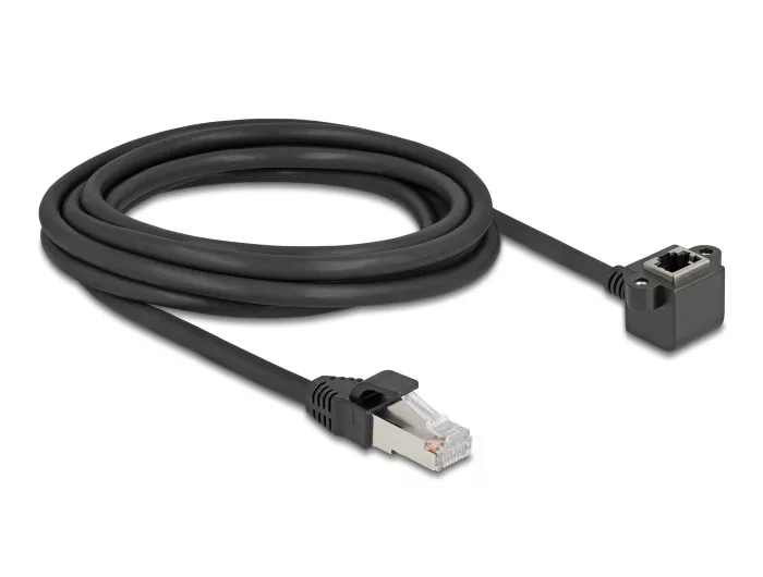 Leírás Ez a Delock hálózati kábel használható különböző eszközök meghosszabbítására és összekapcsolására. Hajlított anya csatlakozóval A hajlított anya csatlakozó lehetővé tesz egy helytakarékos installációt szűk helyeken eszközök mögött vagy hálózati szekrényekben. Műszaki adatok Csatlakozó: 1 x RJ45 dugó 1 x RJ45 hüvely 90 fokos szögű 1:1 csatlakoztatás Cat.6 specifikáció Árnyékolt (F/UTP) Kábel vastagsága: 26 AWG Kábelátmérő: kb. 6,0 mm Kábelborítás anyaga: PVC Szín: fekete Hosszúság: kb. 3 m A csomag tartalma Bővítő kábel Csomag Zárható műanyag tasak