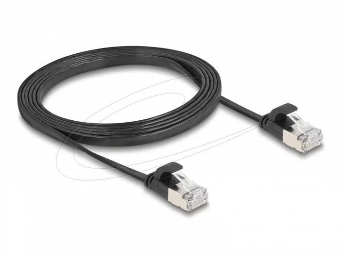 Leírás Ez a Delock hálózati kábel különféle hálózati eszközök csatlakoztatására használható, pl. egy hálózati kártya egy kapcsolóhoz vagy egy patch panelhez. Szuper rugalmas és lapos Az RJ45 kábel ideális szőnyeg alá, padlóra vagy tapéta mögé fektetni. A kábelköpeny anyaga rugalmas és nagyon ellenállóvá teszi a kábelt az igénybevétellel szemben. Műszaki részletek Csatlakozók: 1 x RJ45 dugó 1 x RJ45 dugó 1:1 kapcsolva Cat.6A specifikáció Adatátviteli sebesség akár 10 Gbps Sávszélesség: 500 MHz Árnyékolt (U/FTP) Kábel átmérő: 32 AWG Kábel mérete: kb. 6,6 x 1,8 mm Szín: fekete Anyaga: PVC Hosszúság incl. csatlakozók: kb. 1,5 m A csomag tartalma Patch kábel Csomag Cipzáras poli táska