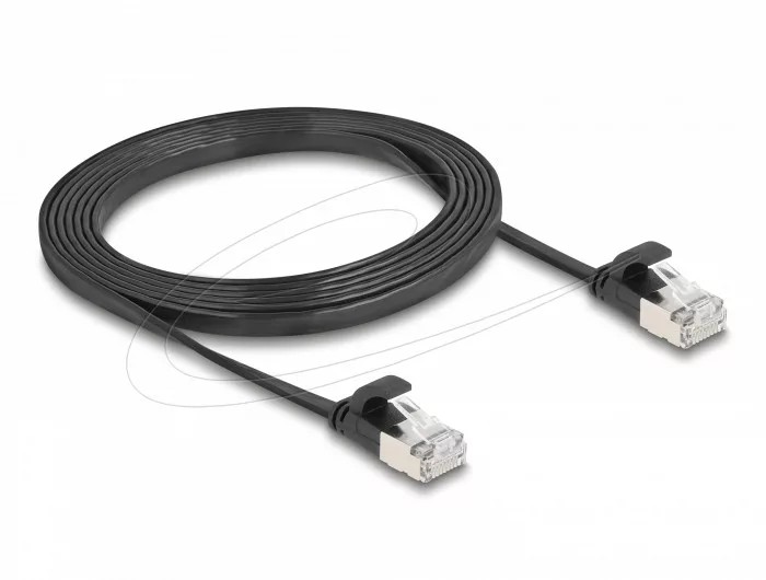 Leírás Ez a Delock hálózati kábel különféle hálózati eszközök csatlakoztatására használható, pl. egy hálózati kártya egy kapcsolóhoz vagy egy patch panelhez. Szuper rugalmas és lapos Az RJ45 kábel ideális szőnyeg alá, padlóra vagy tapéta mögé fektetni. A kábelköpeny anyaga rugalmas és nagyon ellenállóvá teszi a kábelt az igénybevétellel szemben. Műszaki részletek Csatlakozók: 1 x RJ45 dugó 1 x RJ45 dugó 1:1 kapcsolva Cat.6A specifikáció Adatátviteli sebesség akár 10 Gbps Sávszélesség: 500 MHz Árnyékolt (U/FTP) Kábel átmérő: 32 AWG Kábel mérete: kb. 6,6 x 1,8 mm Szín: fekete Anyaga: PVC Hosszúság incl. csatlakozók: kb. 2 m A csomag tartalma Patch kábel Csomag Cipzáras poli táska