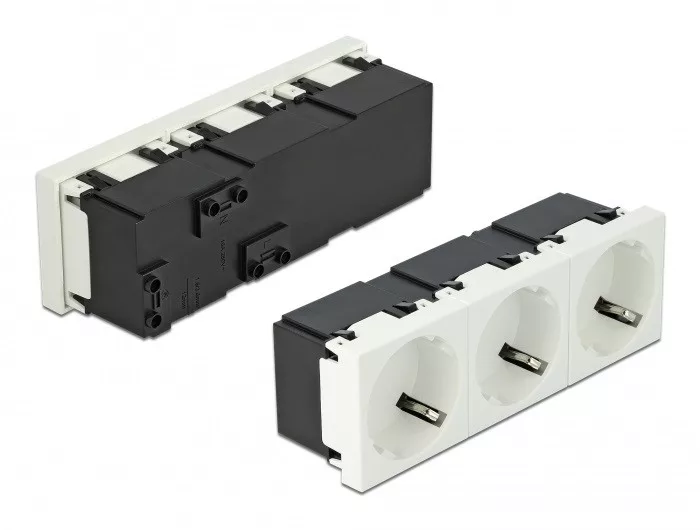 Leírás Ez a Delock hálózati csatlakozóaljzat három CEE 7/3 áram kapcsolat biztosítására tervezett termék. Az egyszerű bedugó mechanizmusának köszönhetően a modul biztosan a helyén van, és könnyen el is távolítható, amennyiben szükség van arra. Műszaki adatok Csatlakozó: 3 x foglalat CEE 7/3 3 x csavar alkalmas PE, N, L Mért áramerősség: 16 A / 250 V~ Márt teljesítmény: 4000 W A foglalatok 45 fokos szögben helyezkednek el Anyag: ABS / PC műanyag Alkalmas Delock Easy 45 modul tartóhoz Alkalmas egy minimum 45 mm mélységű, 45 mm-es kábelcsatornához Modul mérete: 135 x 45 mm Méretek (HxSzxM): kb. 135 x 45 x 39 mm Szín: fehér Rendszerkövetelmények Földeléssel támogatott hálózatok Három szabad Delock Easy 45 (45 x 45 mm) modul port A csomag tartalma 1 x 3 modulos hálózati csatlakozóaljzat Használati utasítás Csomag Zárható műanyag tasak