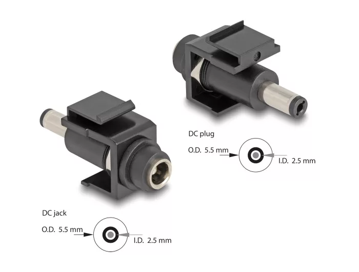 Delock Keystone modul, DC 5,5 x 2,5 mm-csatlakozóhüvely, DC 5,5 x 2,5 mm méretű apa, fekete (DL-84166)