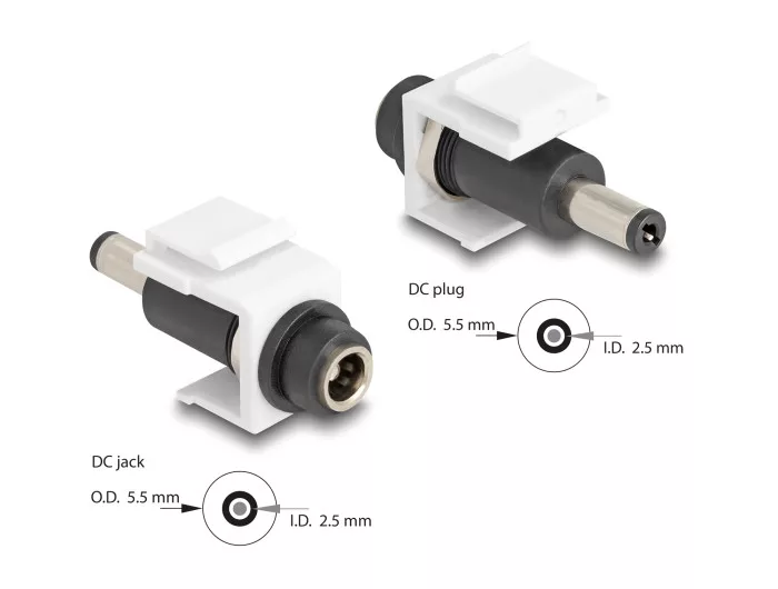 Delock Keystone modul, DC 5,5 x 2,5 mm-csatlakozóhüvely, DC 5,5 x 2,5 mm méretű apa, fehér (DL-84177)