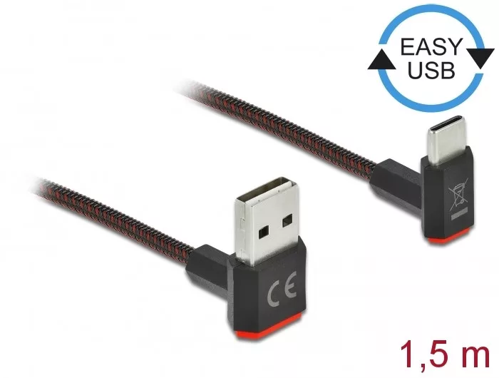 Ez az EASY-USB A-típusú csatlakozódugóval és USB-C csatlakozódugóval ellátott Delock kábel a megfelelő USB-csatlakozóhüvelybe csatlakoztatható mindkét irányban. Emiatt a csatlakozódugó két irányban használható, ami egyszerűbbé teszi a csatlakoztatást.