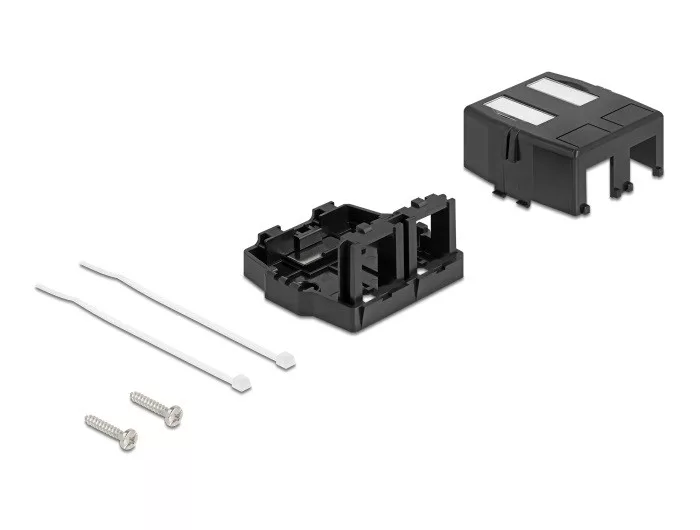 Leírás Ez a Delock üres doboz elosztó keretként használható a falon vagy kapcsolószekrényekben. Szabványos méretének köszönhetően két Keystone modul egyszerű rögzítésére használható. Biztonságos rögzítés Egy beépített mágnes lehetővé teszi, hogy a dobozt fém felületre illeszthető legyen. Emellett a doboz falra szerelhető csavarokkal is. Műszaki adatok 2 Keystone port, 19,2 x 14,9 mm Kábelelvezetés: 180 Integrált névlemez Mágneses talp Műanyag ház Falra szerelhető a házban Szín: fekete Méretek (HxSzxM): kb. 57,3 x 54,5 x 32,4 mm A csomag tartalma Keystone falon kívüli doboz 2 x kábelkötöző 2 x csavar Csomag Zárható műanyag tasak