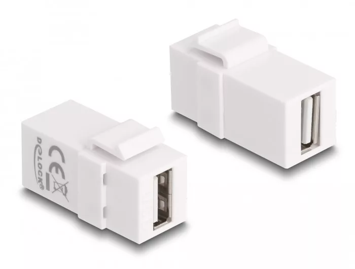 Leírás Ezzel a Delock modullal pl. USB kábelt lehet meghosszabbítani. Szabványos méreteivel könnyen bepattintható szereléshez használható pl. Keystone patch panelbe, előlapba vagy felületre szerelhető dobozba. Leírás Csatlakozók: 2 x USB 2.0 Type-A anya Pin-kiosztás: 1:1 Szín: fehér Keystone portokhoz 19,2 x 14,9 mm-es Méretek (HxSzxM): kb. 36,2 x 16,7 x 22,0 mm A csomag tartalma Keystone modul Csomag Cipzáras poli táska