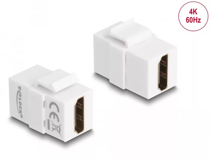 Leírás Ezzel a Delock modullal pl. HDMI kábelt lehet meghosszabbítani. Szabványos méreteivel könnyen bepattintható szereléshez használható pl. Keystone patch panelbe, előlapba vagy felületre szerelhető dobozba. Leírás Csatlakozók: 2 x HDMI-A csatlakozó Felbontás 3840 x 2160 @ 60 Hz -ig (a rendszertől és a csatlakoztatott hardvertől függően) Szín: fehér 19,2 x 14,9 mm-es Keystone portokhoz Méretek (HxSzxM): kb. 28,8 x 17,2 x 22,0 mm A csomag tartalma Keystone modul Csomag Cipzáras poli táska
