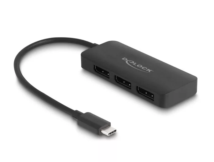 Leírás Ez a Delock megosztó alkalmas három DisplayPort monitor összekapcsolására egy számítógép USB-C kapcsolófelületéhez és támogatja a DisplayPort módosító módját. A három monitor egyidőben használható a kimenetekről. Multi-Stream Transport (MST) A termék egy Multi-Stream Transport (MST) hub, és támogatja a DisplayPort kiterjesztett asztali konfigurációját. Windows-ban az összekapcsolt képernyők egyénileg irányíthatók és össze is kapcsolhatók egyetlen nagy kijelzővé. Magas felbontás A DisplayPort 1.4 magasabb adatátviteli sebességének köszönhetően, összesen három képernyő 4 K felbontással (3840 x 2160) tud üzemelni. Műszaki adatok Csatlakozó: Bemenet: 1 x USB Type-C dugó Kimenet: 3 x DisplayPort hüvely Lapkakészlet: VMM5330 DisplayPort 1.4 specifikáció Aktív átalakító, egy / több adatfolyam lejátszását támogató átviteli hub (SST / MST) Támogatja a Display Stream Compression 1.2 (DSC) használatát Támogatja a HDR használatát Támogatja a HDCP 1.4 és 2.2 használatát Maximális felbontás (a rendszertől és csatlakoztatott hardvertől függően) DisplayPort 1.4 Multi-Stream Transport (MST): 2 lejátszó: akár 3840 x 2160 @ 60 Hz 3 lejátszó: akár 3840 x 2160 @ 30 Hz + 1 db. akár 3840 x 2160 @ 60 Hz DisplayPort 1.4-es Multi-Stream Transport (MST) + DSC: 3 lejátszó: akár 3840 x 2160 @ 60 Hz Funkciók: Tükrözött vagy Kiterjesztett (csak Windows esetén) Hang- és videojelek továbbítása USB-busz energiaforrás Szín: fekete Kábelhosszúság csatlakozó nélkül: kb. 15 cm Méretek kábel nélkül (HxSzxM): kb. 87 x 36 x 12 mm Rendszerkövetelmények Windows 10/10-64/11 Asztali vagy hordozható számítógép szabad USB Type-C porttal és DisplayPort váltakozó móddal vagy Asztali vagy hordozható számítógép szabad Thunderbolt 3 porttal A csomag tartalma Elosztó USB-C csatlakozóval (DisplayPort alternatív mód támogatás) Használati utasítás Csomag Retail Box