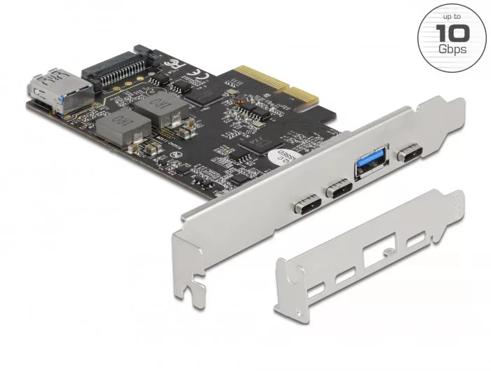 Delock PCI Express x4 Kártya - 3 x USB Type-C + 2 x A-típusú USB - SuperSpeed USB 10 Gbps - alacson (DL-90060)