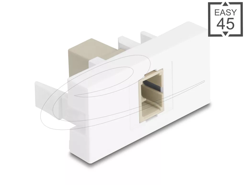 Ezt a Delock Easy 45 modult úgy tervezték, hogy optikai szálas portot biztosítson , és csatlakoztatható a Delock Easy 45 modulrendszerhez. Az egyszerű bepattintható mechanizmus biztosítja, hogy a modul szilárdan a helyén legyen, és szükség esetén könnyen eltávolítható.