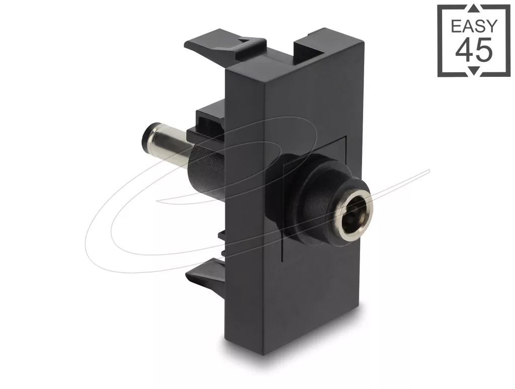 Ez a Delock Easy 45 modul DC porttal rendelkezik, és a Delock Easy 45 modulrendszerhez csatlakoztatható. Az egyszerű bepattintós mechanizmus biztosítja, hogy a modul szilárdan a helyén legyen, és szükség esetén könnyen eltávolítható.