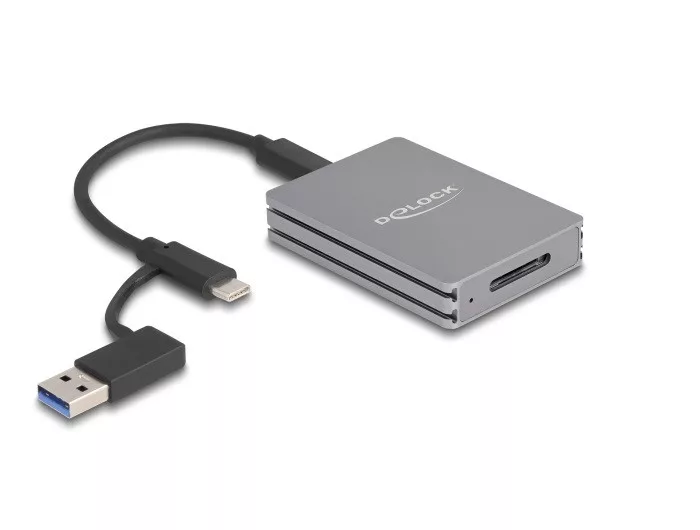 Leírás A Delock kártyaolvasó használható CFexpress memóriakártyák olvasásához és írásához. A kártyaolvasó csatlakoztatható személyi számítógéphez vagy mobileszközhöz az USB csatlakozón keresztül. Fokozott összeköttetés Az adapter különleges kialakításának köszönhetően a Delock kártyaolvasó könnyen és gyorsan csatlakoztatható egy A-típusú USB csatlakozóhoz. Így, könnyen összeköthető új eszközökkel a USB Type-C anyával és idősebb eszközökkel is, melyeknek csak egy A-típusú konnektorja van. Az adapter közvetlenül a kábelen helyezkedik el és így nem veszíthető el. Kicsi, biztos és kézreálló Kis méreteinek és erős házának köszönhetően ez a Delock kártya olvasó különösen alkalmas utazásokhoz. Egyszerűen becsomagolható a táskába a laptoppal vagy tablettel együtt és használható szükség esetén. Műszaki adatok Csatlakozó: 1 x USB 10 Gbps USB Type-C hüvely 1 x CFexpress 2.0-nyílás A-típusú Tolja be az CFexpress-nyílásba Akár 10 Gbps sebességű adatátvitel Támogatja a NVM Express (NVMe) használatát Rendszerindításra alkalmas 1 x LED jelzőfény a tápfeszültség és elérés jelzéséhez Szín: szürke Plug & Play Méretek (HxSzxM): kb. 70 x 50 x 13 mm Rendszerkövetelmények Android 13.0 vagy újabb Chrome OS Linux Kernel 5.19 vagy újabb Mac OS 12.4 vagy újabb Windows 10/10-64/11 iPad Air (4. generáció) vagy újabb iPad Pro (3. generáció) vagy újabb Surface Pro 7 Egy szabad USB Type-C porttal vagy egy szabad Thunderbolt 3 porttal rendelkező eszköz vagy Thunderbolt 4 vagy Egy szabad USB A-típusú-csatlakozó A csomag tartalma USB Type-C > CFexpress kártyaolvasó Kábel USB-C apa - USB-C apa (A-típusú USB apa adapterrel), hossza kb. 15 cm Használati utasítás Csomag Retail Box
