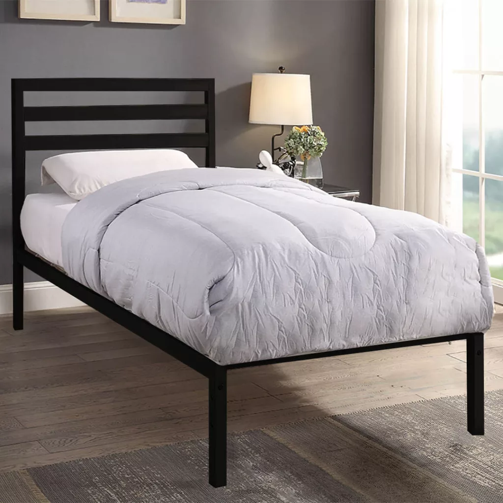 A Bella fém ágykeret letisztult és dekoratív kialakításának köszönhetően bármely hálószoba tökéletes kiegészítője lehet. A formatervezett fej- és lábtámla eleganciát sugároz, míg az erős fémszerkezet stabil és biztonságos alvási környezetet biztosít. A középső hosszanti merevítés tovább növeli az ágykeret teherbírását, míg a masszív fa ágyrács kényelmes és tartós alátámasztást nyújt a matrac számára.