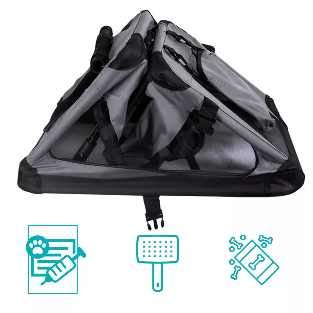 Az összehajtható kisállathordozó táska biztonságos és kényelmes megoldást kínál kisállatok szállítására utazások, állatorvosi látogatások vagy kirándulások során. Hálós ablakaival gondoskodik a megfelelő szellőzésről, praktikus zsebében pedig elférnek a fontos kiegészítők. Összehajtható kialakításának köszönhetően helytakarékosan tárolható, használaton kívül könnyedén elpakolható.