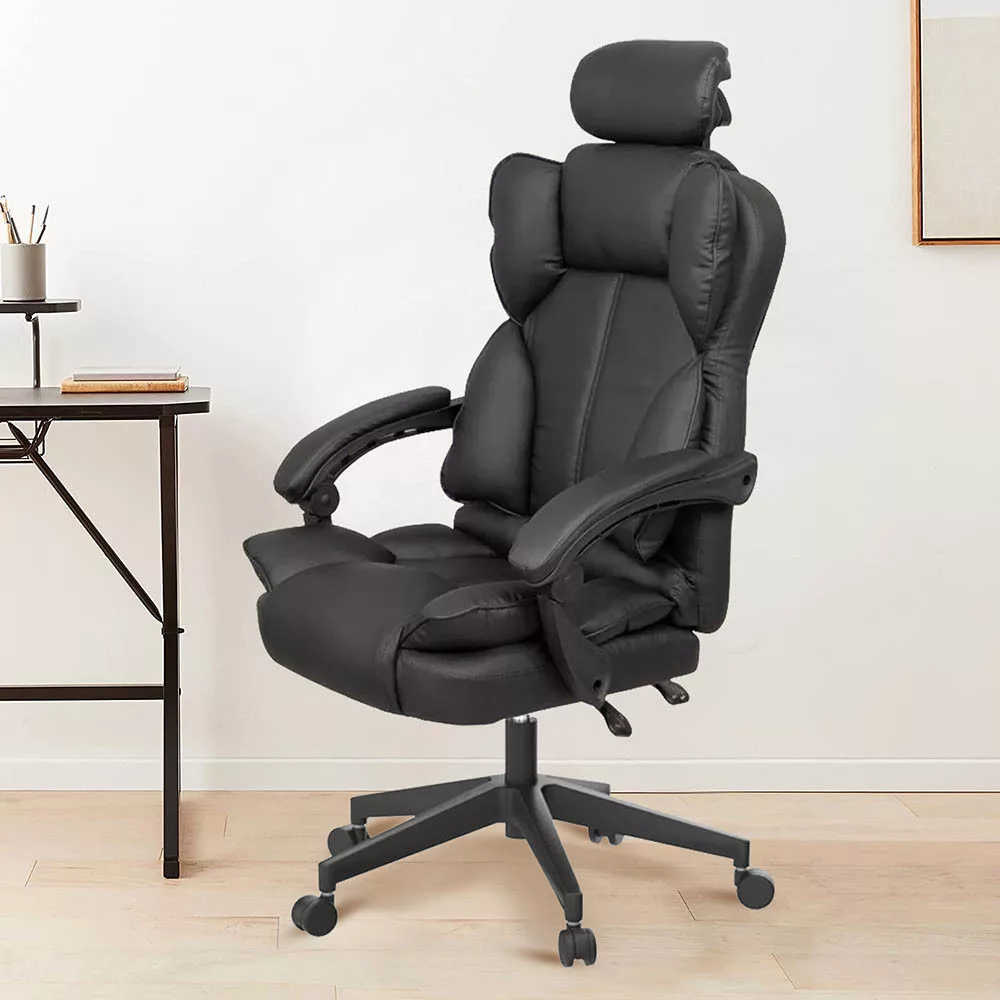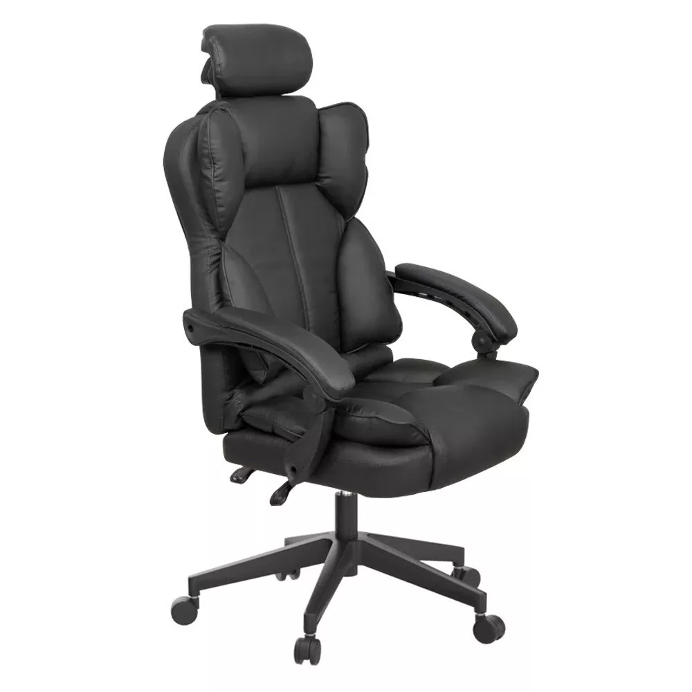 A Lux főnöki forgószék ötvözi a letisztult megjelenést és a kényelmet, így ideális választás irodai vagy otthoni használatra. Párnázott ülőfelülete, háttámlája és fejtámlája maximális komfortot biztosít, míg a dönthető és fixálható háttámla lehetővé teszi a tökéletes ülőpozíció beállítását.